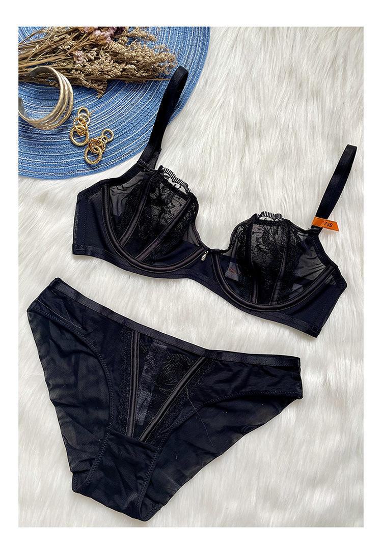 Fabricante atacado dropshipping confortável tamanho grande renda ultrafina sexy malha totalmente transparente conjunto de sutiã
