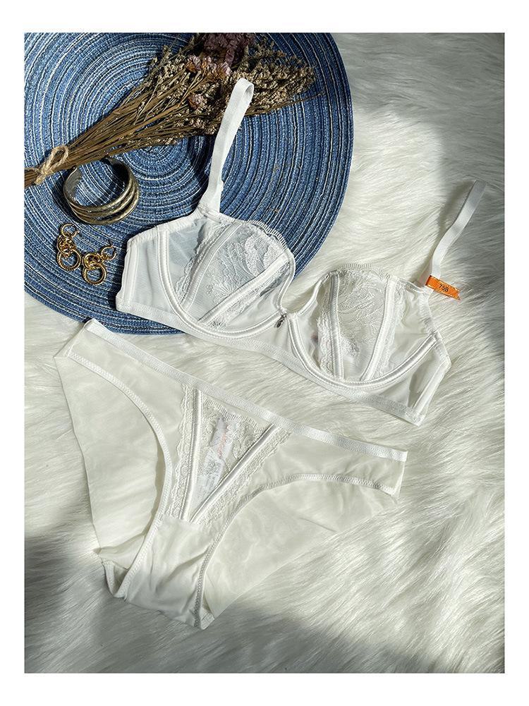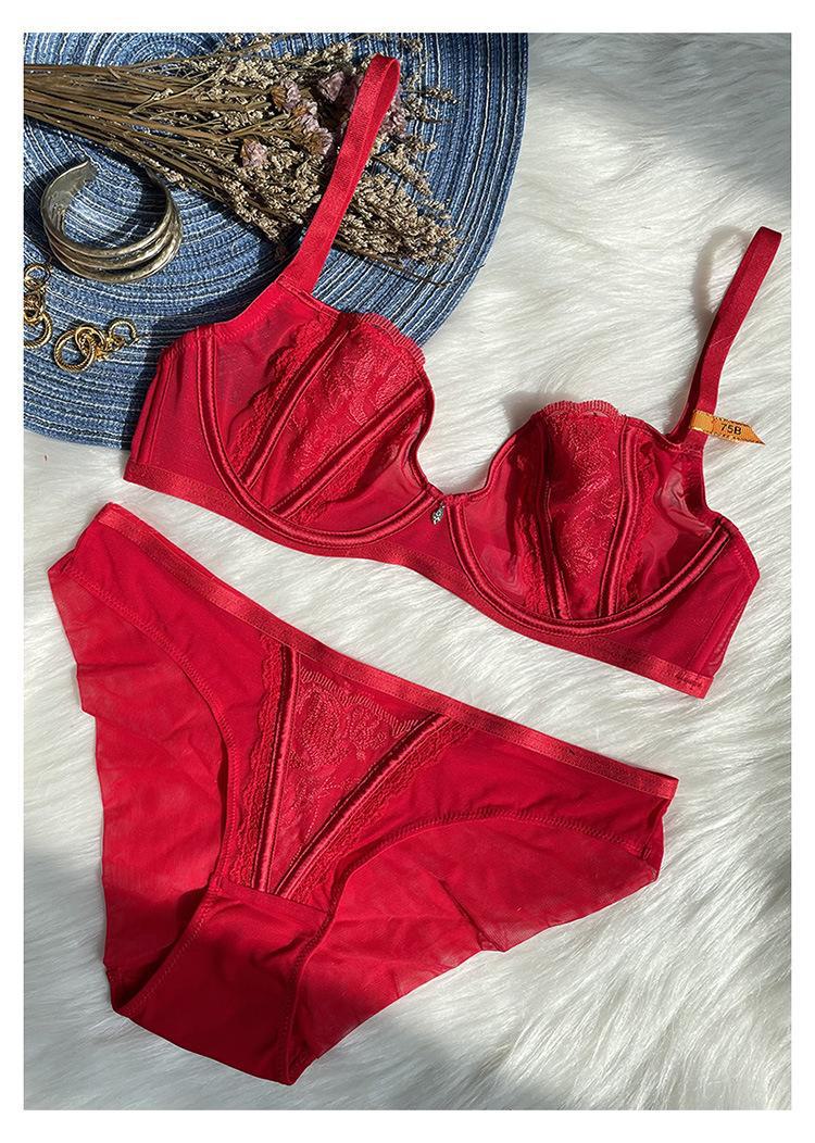 Conjunto de sutiã de renda sexy ultrafino transparente sem almofada 1/2 meia xícara