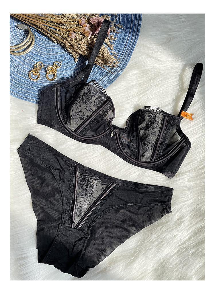 Conjunto de sutiã push-up feminino com renda ultrafina, roupa íntima bonita, transparente, confortável e respirável