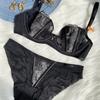Conjunto de sutiã sexy V profundo push up roupa íntima feminina cinta-liga