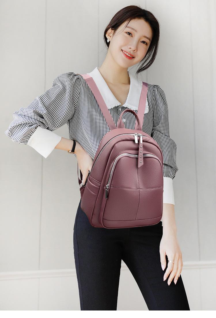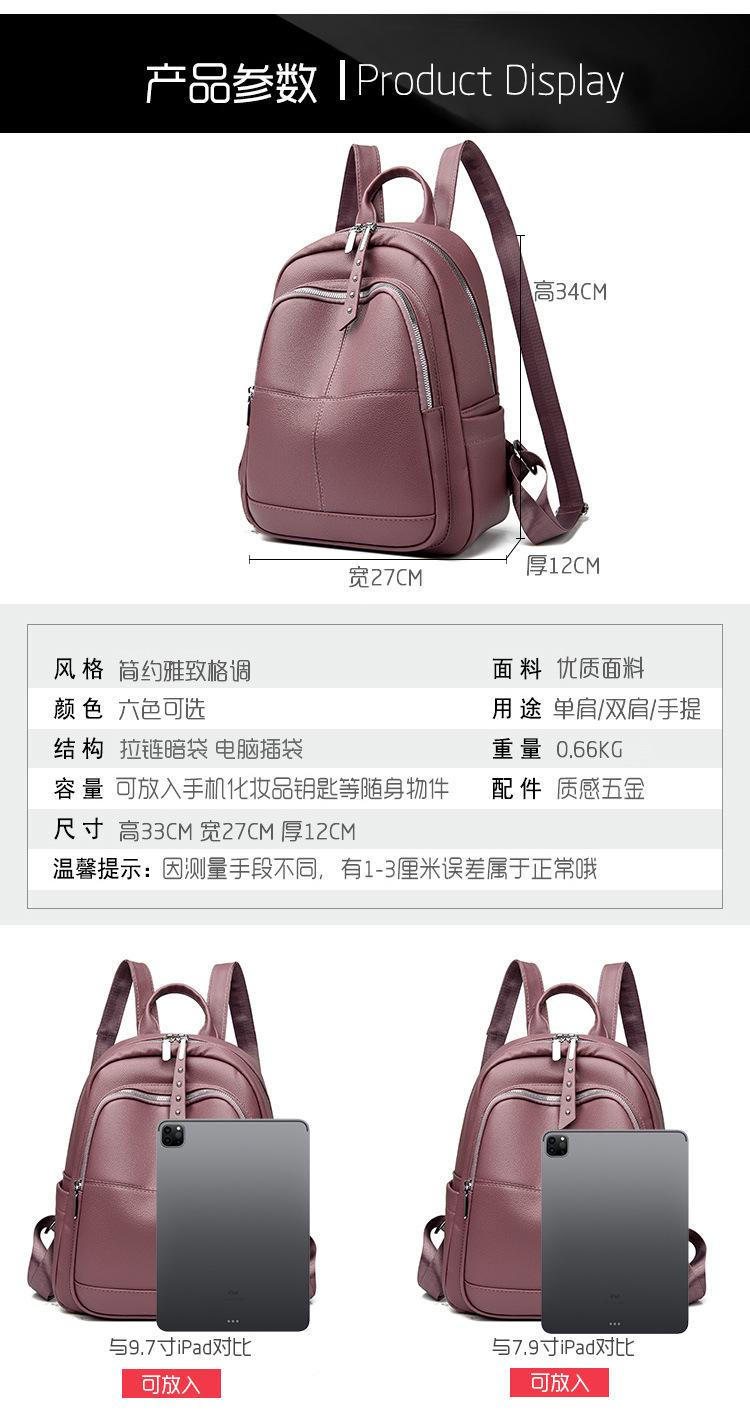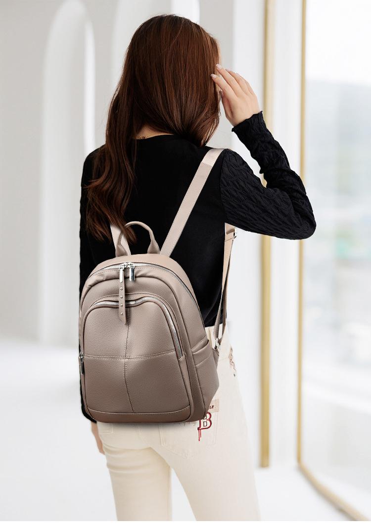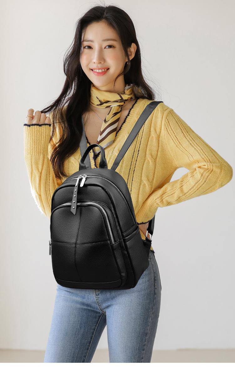 Mochila Feminina de Couro Macio Novo Estilo Viagem Moda Mochila de Viagem Grande Capacidade Simples Casual Commuter Bolsa Feminina