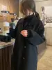 Casaco de lã dupla face, clássico, solto, elegante, com cadarço, longo, elegante, combinando
