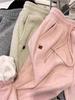 Calça casual feminina de material toalha cinza com pernas justas, forrada com lã para outono e inverno, calça de moletom grossa, cintura alta, emagrecedora, arroz glutinoso, perna larga