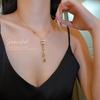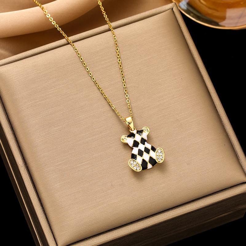 [Aço titânio] colar leve de luxo micro ouro incrustado urso houndstooth feminino nova corrente de clavícula leve luxo nicho design senso