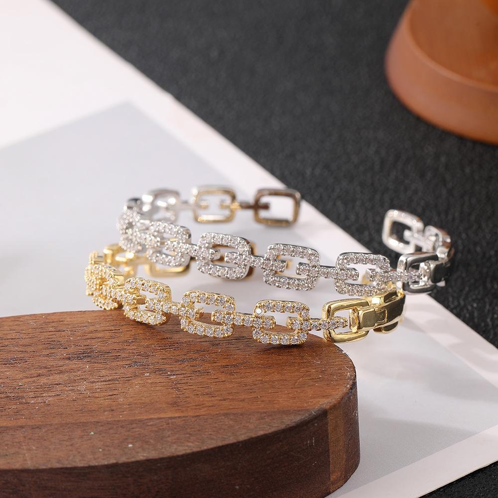 Pulseira de Corrente de Zircônia Diamante Completo Transfronteiriça para Mulheres, Pulseira Moderna e Simples de Gypsophila, Temperamento de Nicho, Pulseira Geométrica Versátil