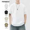 Camiseta masculina de manga curta, cor sólida, de algodão pesado, 2025, solta, com gola redonda, branca, com base interna, top masculino