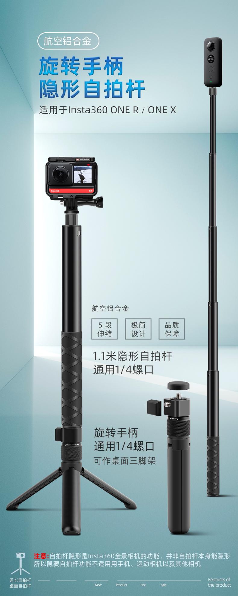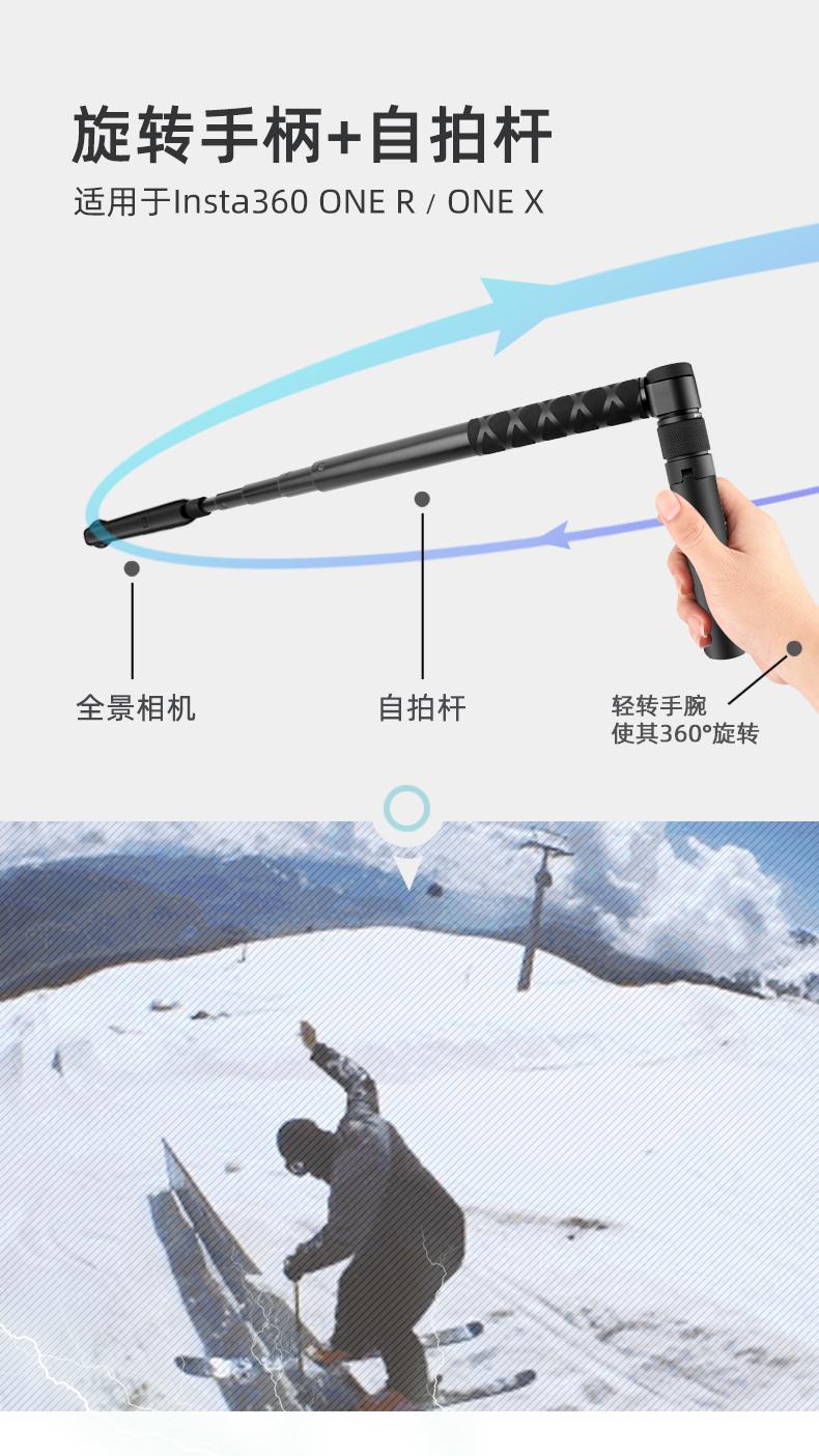 Compre Insta 360 ONE X2 / 3X4 Bullet Time Selfie Stick Handle Rotary Shooting suit Stealth Stick no atacado no Joom.pro