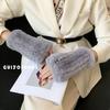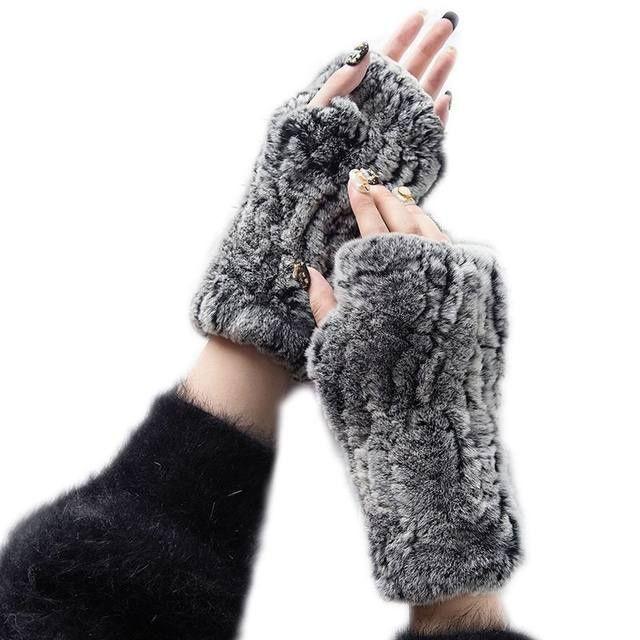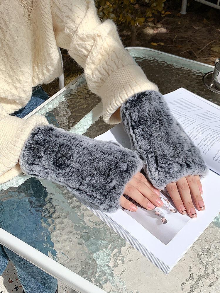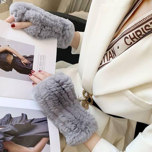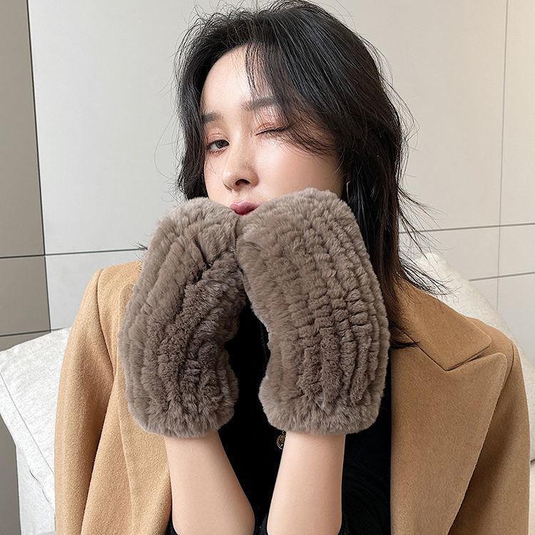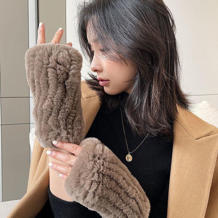 Luvas de Pele Quente de Cabelo de Coelho Rex para Mulheres de Inverno com Pulso de Manga Elástica de Dedo Aberto para Mulheres