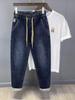 Primavera e Verão Nova Cintura Elástica Jeans Preto Marca Masculina Moda Solta Stretch Lavado Casual Harém Calças