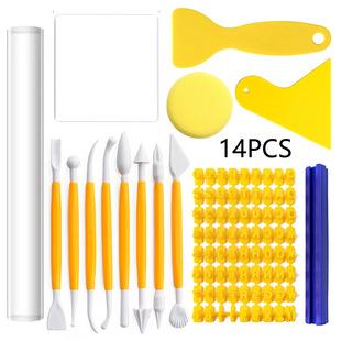 | Ferramentas de cerâmica transfronteiriças, conjunto de 14 peças, pedra, plástico, argila, faca de escultura, haste acrílica, tábua de fricção, letra, grão |