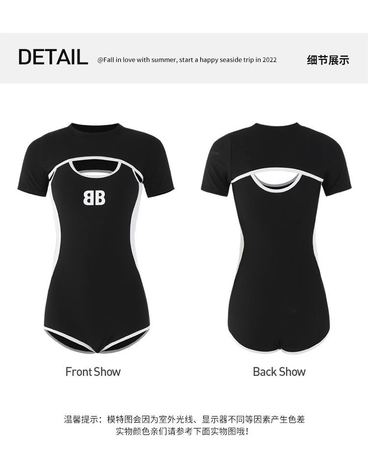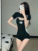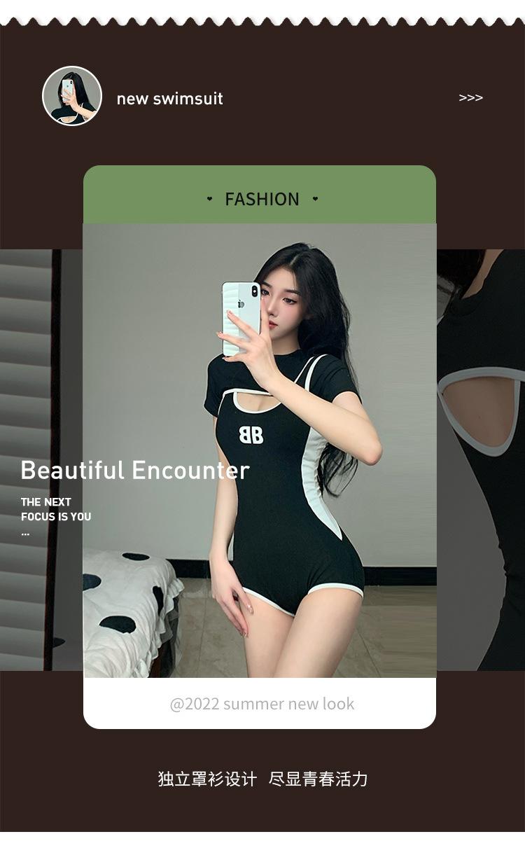 Moda praia feminina verão 2022 novo conservador ins siamês cintura alta barriga cobrindo slim preto roupa de banho para férias