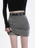 Saia Preta Dividida Irregular Verão Feminino Saia Evasê de Comprimento Médio 2024 Nova Saia de Quadril de Cintura Alta