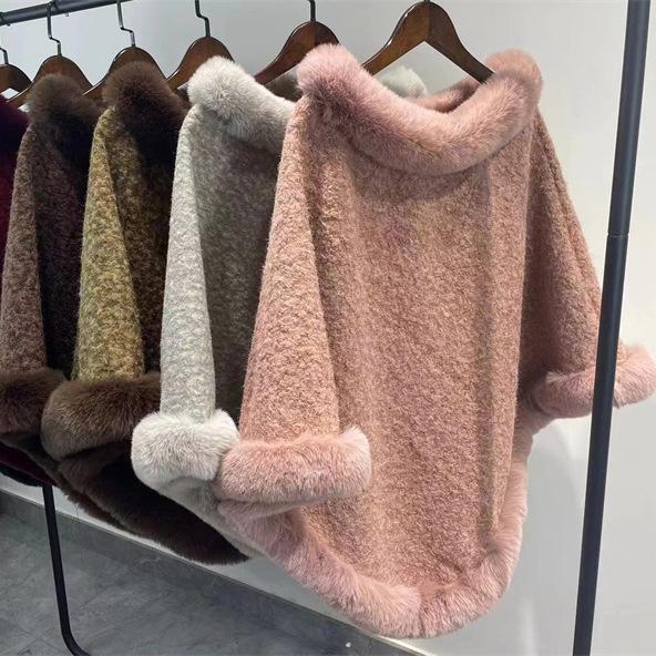 Amazon Outono e Inverno Gola de Pele Oversized Mulheres Casaco de Pele Xale Festa Cachecol Capa Pulôver Capa Top