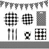 Conjunto de festa de aniversário em preto e branco da Amazon Bandeja de papel Toalha de papel Copo de papel Decoração de festa de aniversário Mosaico de corrida