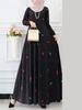 Vestido Casual Feminino Fashion com Estampa de Folhas e Bolinhas, Saia Rodada Manga Longa Boêmia para Primavera e Outono