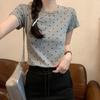 Uma camiseta de manga curta transfronteiriça para o verão feminino de 2024, jaqueta de gola redonda com bolinhas e ombros curtos, roupas femininas coreanas