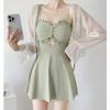 Maiô Feminino Verão 2023 Novo Conservador Moda Barriga Cobrindo Biquíni Magro Peito Pequeno Reunido Férias Maiô de Uma Peça