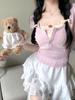 Lace Stitching Falso Duas Peças Rosa Short-sleeved T-shirt Mulheres Verão Puro Doce Spice Girl Sexy Top Design Sense Niche