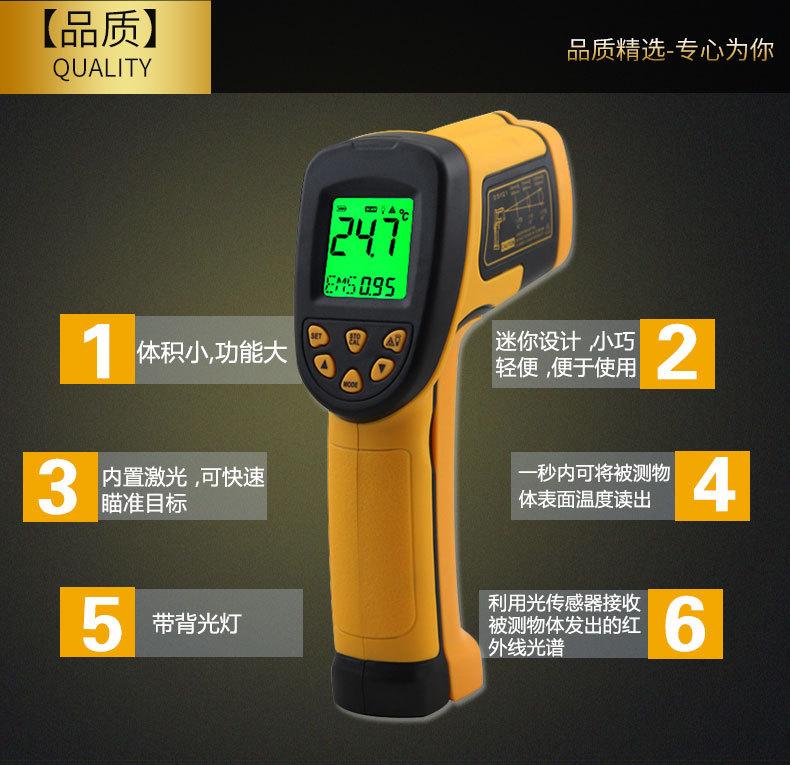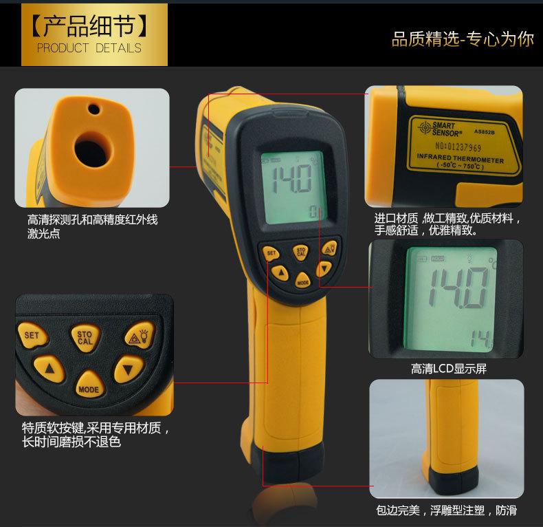 Termômetro infravermelho de alta precisão Xima AS852B, portátil, pistola de temperatura infravermelha, termômetro eletrônico industrial