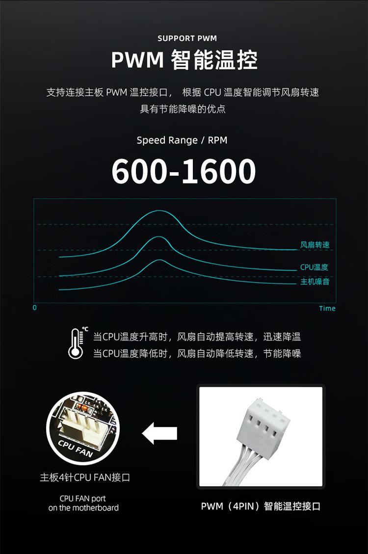 Mute, Ultra-quiet, Non-slip design, Line management function, Supports intelligent temperature control