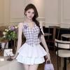 Chanel Estilo Terno Doce Spice Menina Pendurado Pescoço Camisola Top Feminino Primavera e Verão Elegante Saia Puffy Saia Curta