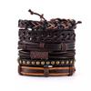 Pulseira de couro trançada com quatro peças de cartão da sorte, árvore da sorte, terno multicamadas, joia vintage estilo masculino