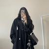 Chic Preto Escuro de Alta Qualidade Preto Trench Coat Casal Desgaste Solto Doce Cool Estilo Mid-length Double Breasted Casaco