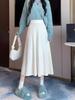 Saia Tricotada para Mulheres 2024 Nova Saia Artística de Outono e Inverno Cintura Alta Look Emagrecedor Comprimento Médio com Suéter Saia A-Line