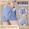Verão Novo Estilo Feminino Yoga Esportes Corrida Respirável Mesh Bolsos Laterais Anti-Exposição Falso Duas Peças Shorts Fitness