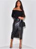 Compre M6006 Roupa Europeia e Americana Elegante Couro PU 25 Nova Primavera Cintura Alta Plissada Fenda Assimétrica Versátil Saia Média no atacado no Joom.pro