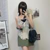 Conjunto de três peças com camisola vazada de verão, saia envolvente no peito, estilo feminino, doce, antienvelhecimento, roupa pequena, moda casual