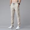 Calças casuais masculinas primavera verão seda fina gelo secagem rápida moda moderna perna reta perna pequena calças respiráveis