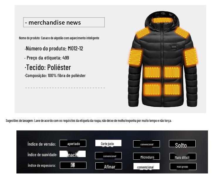 19-Zona versão atualizada 4-controlado aquecimento casaco acolchoado de algodão 11-Zona 9-zona duplo-controlado terno de aquecimento inteligente de temperatura constante grande tamanho acolchoado jaqueta acolchoada