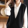Colete de Caxemira Engrossado para Mulheres com Decote em V Solto Tricotado 100 Lã Pura Suéter Sem Mangas Colete de Malha Externa