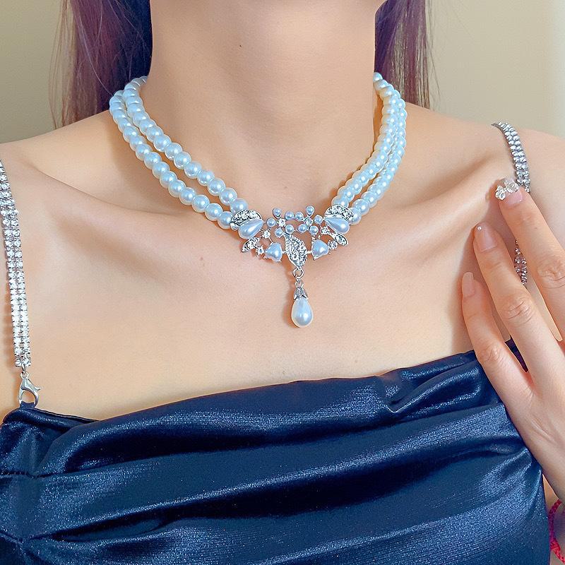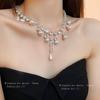 Estilo francês Luz de luxo diamante gota de água colar de pérolas nicho design criativo sentido clavícula cadeia elegante high-end sentido jóias para mulheres