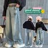 Jeans femininos primavera e outono 2024 novas crianças médias e grandes usam calças retas de estilo ocidental da moda calças casuais infantis