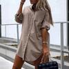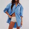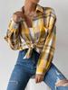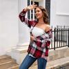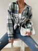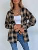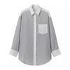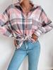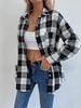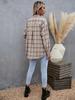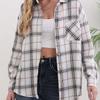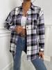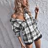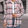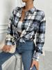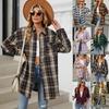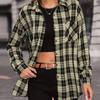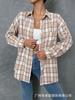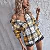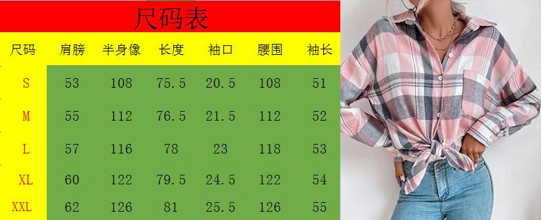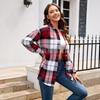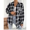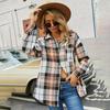 2023 Amazon Cross-border Women's Wear Europa e América Hot Plaid Pocket Back Piece Plissado Solto Camisa de Manga Comprida Feminina