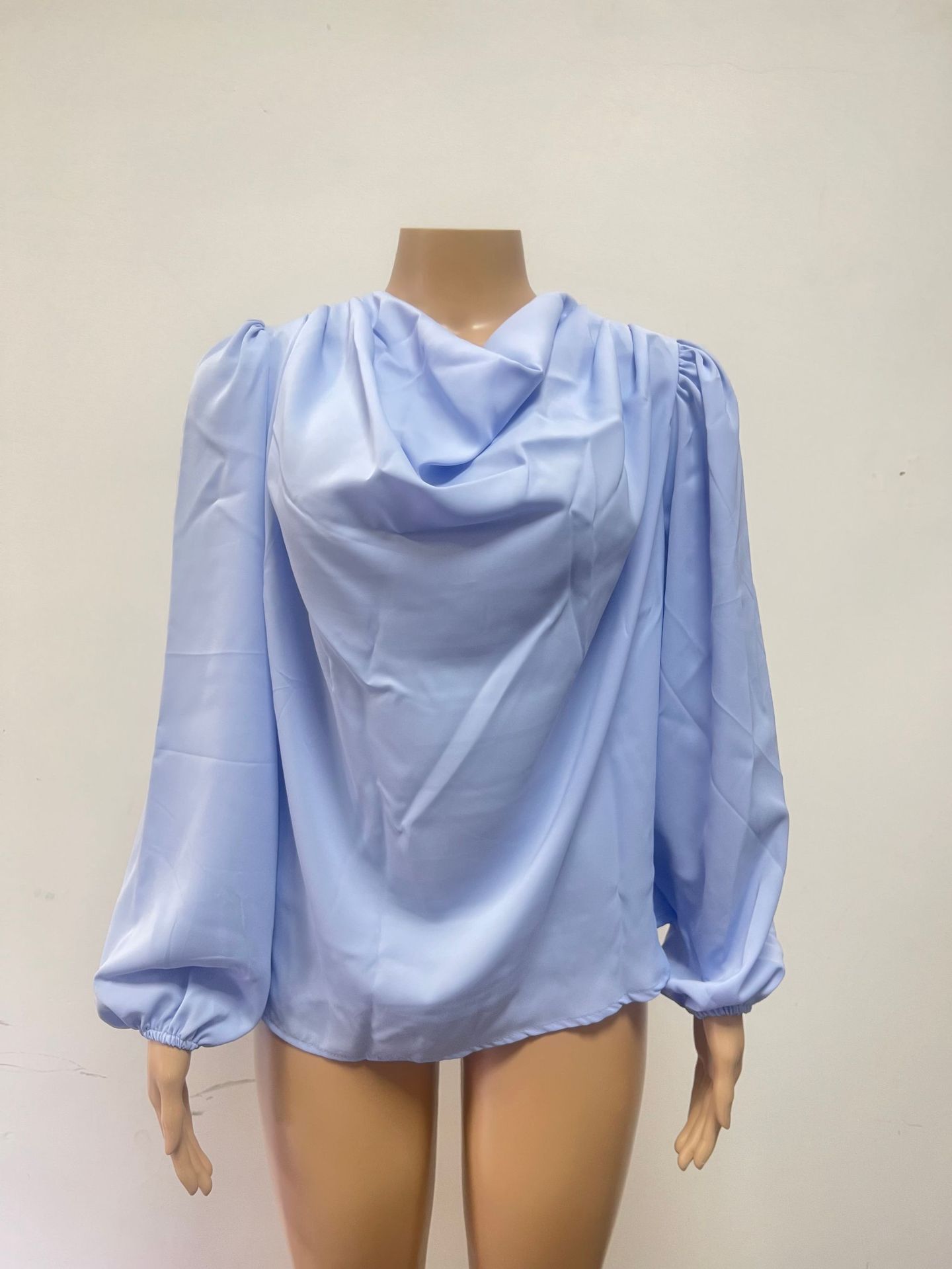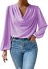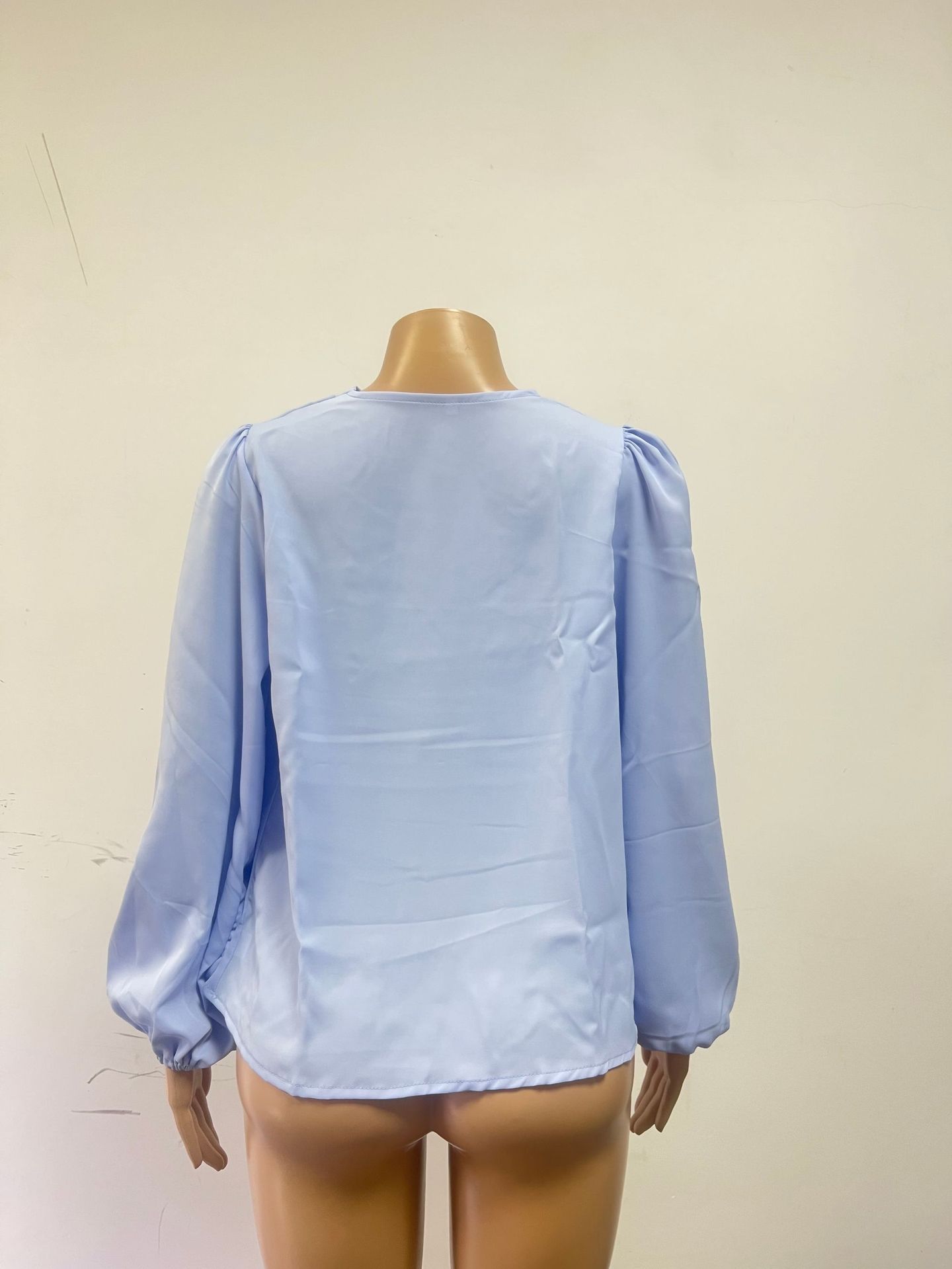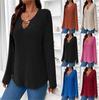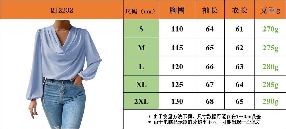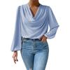2024 Transfronteiriço Temu Amazon Nova Camisa de Chiffon de Manga Comprida Europeia e Americana Solta Drapeada Decote V Top Camiseta para Mulheres