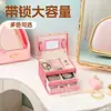 Caixa de Joias Multicamadas de Couro com Fechadura, Caixa de Armazenamento de Joias de Grande Capacidade para Colares e Brincos, Caixa de Embalagem para Presente de Alta Qualidade