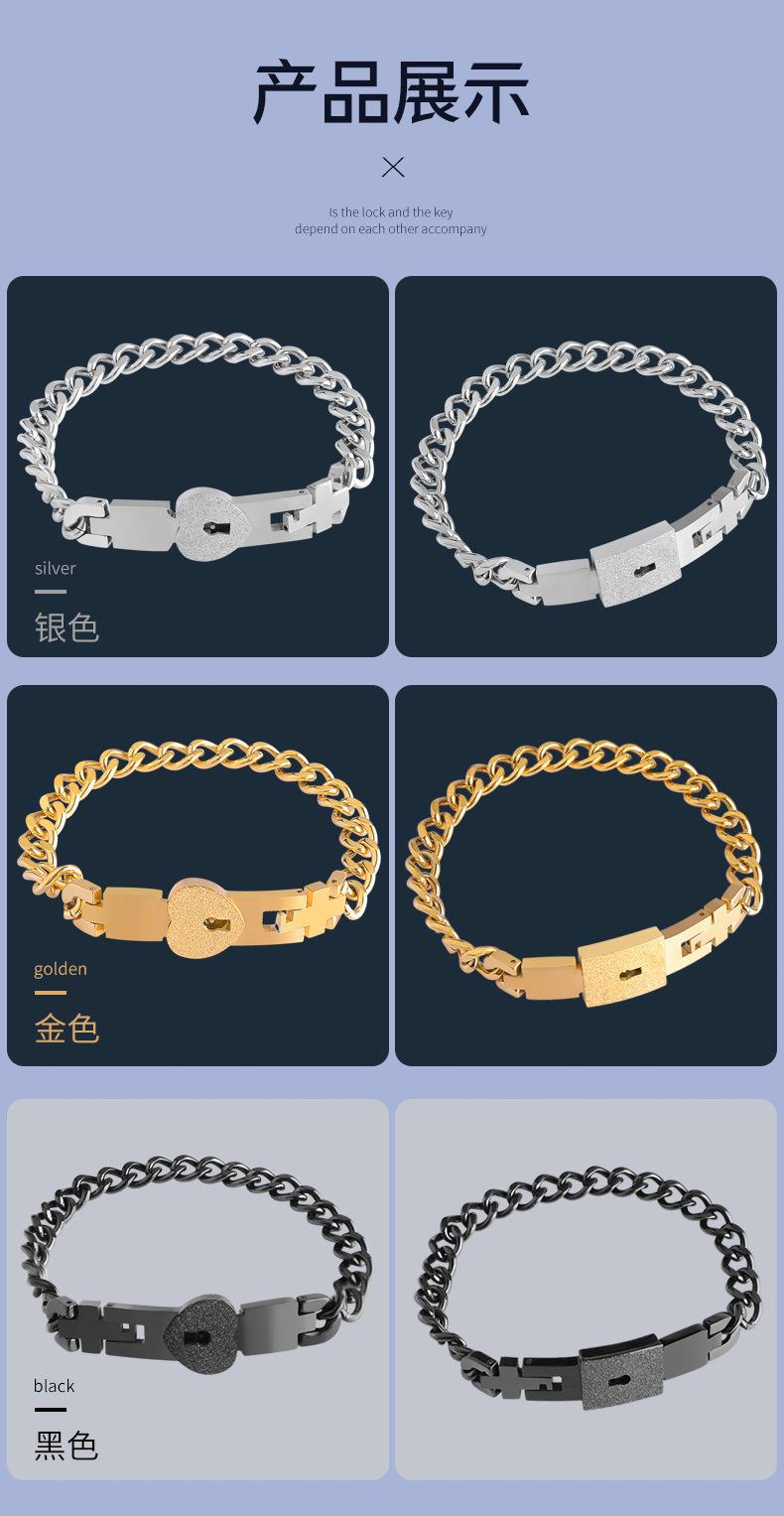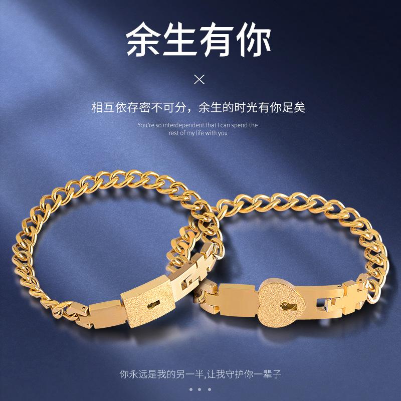 Pulseira de Casal Aço Titânio Transfronteiriça da Amazon, Aço Inoxidável Retrô Dourado, Fecho Concêntrico, Estilo Frio e Luxo Leve