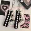 [Fita de gato rosa preto] arco artesanal frisado cadeia de telefone móvel pequeno pingente cartão livro pendurado cadeia bonito coração menina