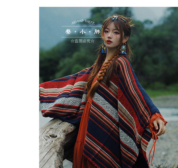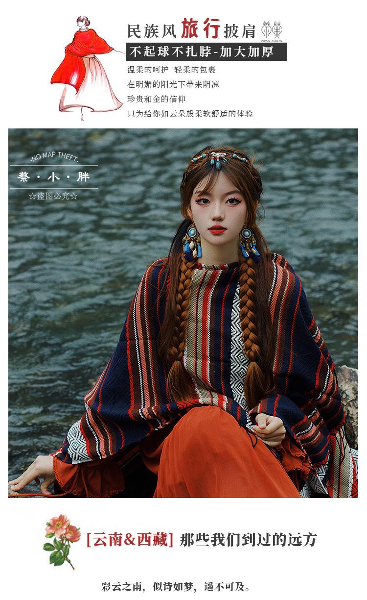 Super bonito Yunnan xale lenço noroeste manto quente estilo étnico Xinjiang Qinghai turismo manto vermelho