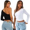 Roupas europeias e americanas, camiseta casual de manga comprida, primavera e outono, cor pura, camiseta slim, blusa feminina, roupa de rua, camisa de baixo, top
