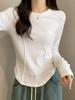 Camisa de assentamento slim-fit Feminino com gola em u forrada de lã clavícula aberta 2024 novo outono e inverno roupa interna manga comprida chique puro desejo top camiseta
