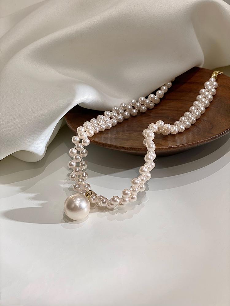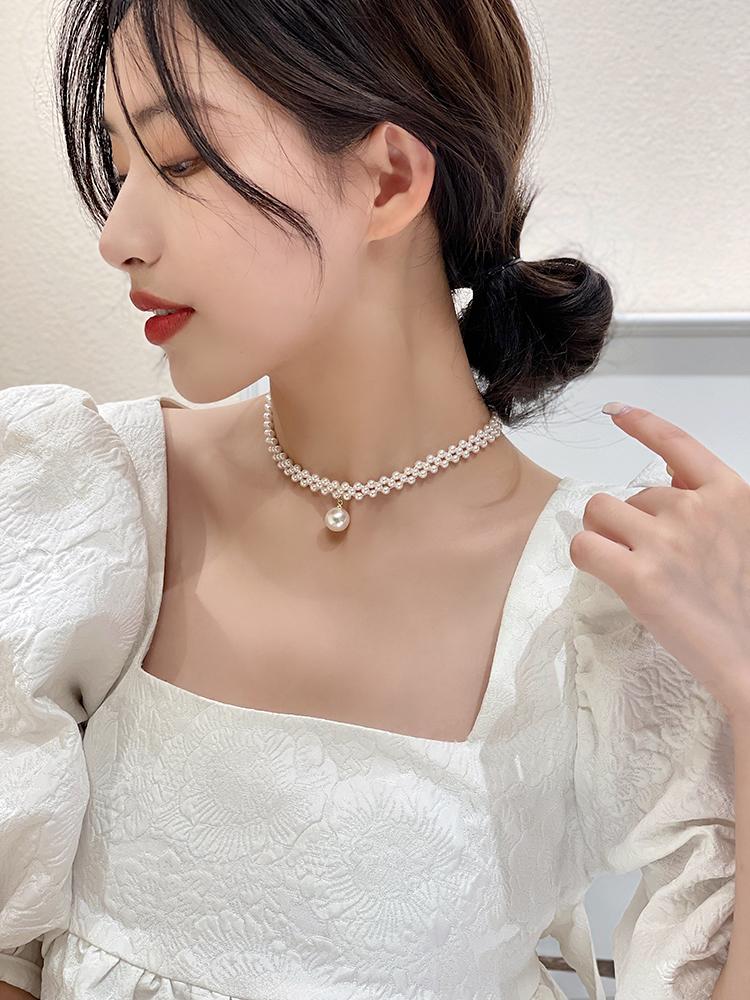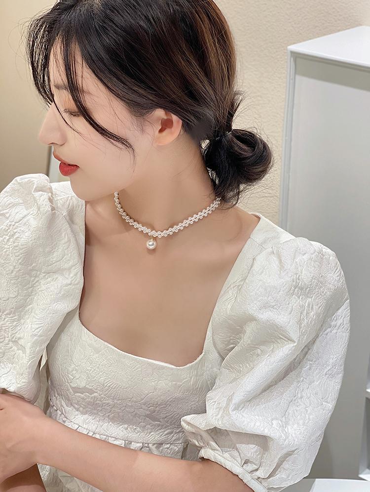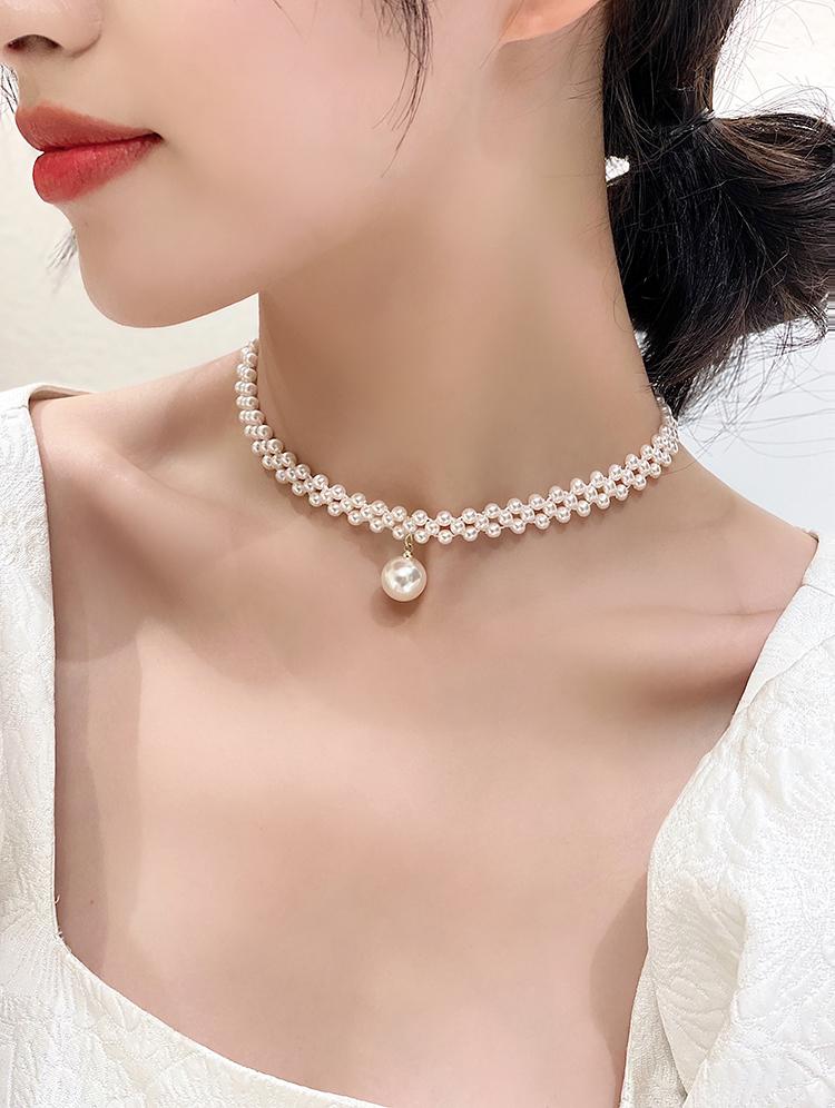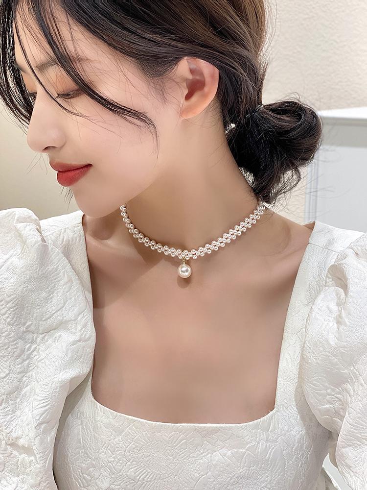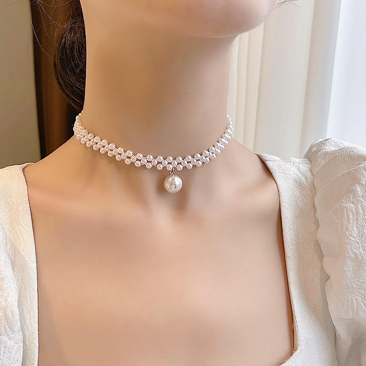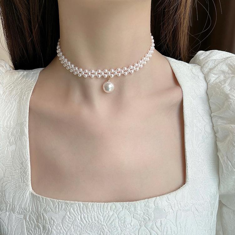 Coreano Moda Elegante Colar de Pérolas Sentido de Design Feminino Feito à Mão Tecido Três Fileiras Pérola Clavícula Cadeia Colar Acessórios