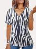 Europeu e Americano Transfronteiriço 2024 Amazon TEMU Verão Nova Moda Casual Impresso Decote em V Zíper Camiseta Feminina de Manga Curta