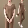 Algodão [spot] Estilo estrangeiro terno esportivo moda feminina casual de duas peças elegante primavera e verão magro nova estação europeia