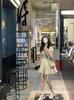 Estilo francês Tea Break Floral Vestido com decote em V Feminino Verão Estilo Suave Cintura Pequena Emagrecimento Bolha Manga Saia