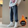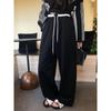 2024 Nova Primavera Feminina All-match Miumiu Calças Curvas Bordadas Cintura Alta Perna Larga Calças Casuais com Cordão Elástico