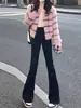 Calça Jeans Bootcut Preta Feminina 2025 Verão Fina Cintura Alta Slim Flare para Pessoas Baixas Calça Ferradura Comprimento Chão